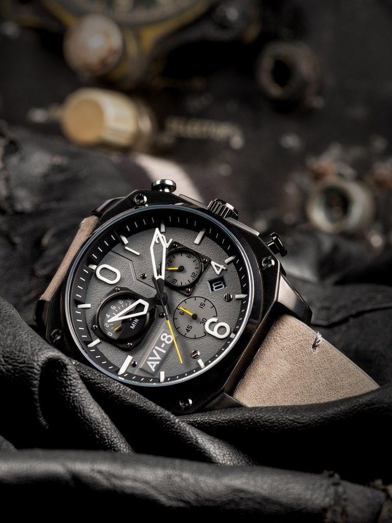 With piston like pushers and level upon level of Hunter inspired aesthetic touches, the AV 4052 pays suitable tribute to the famed jet without being cluttered and fussy in its carefully considered design.