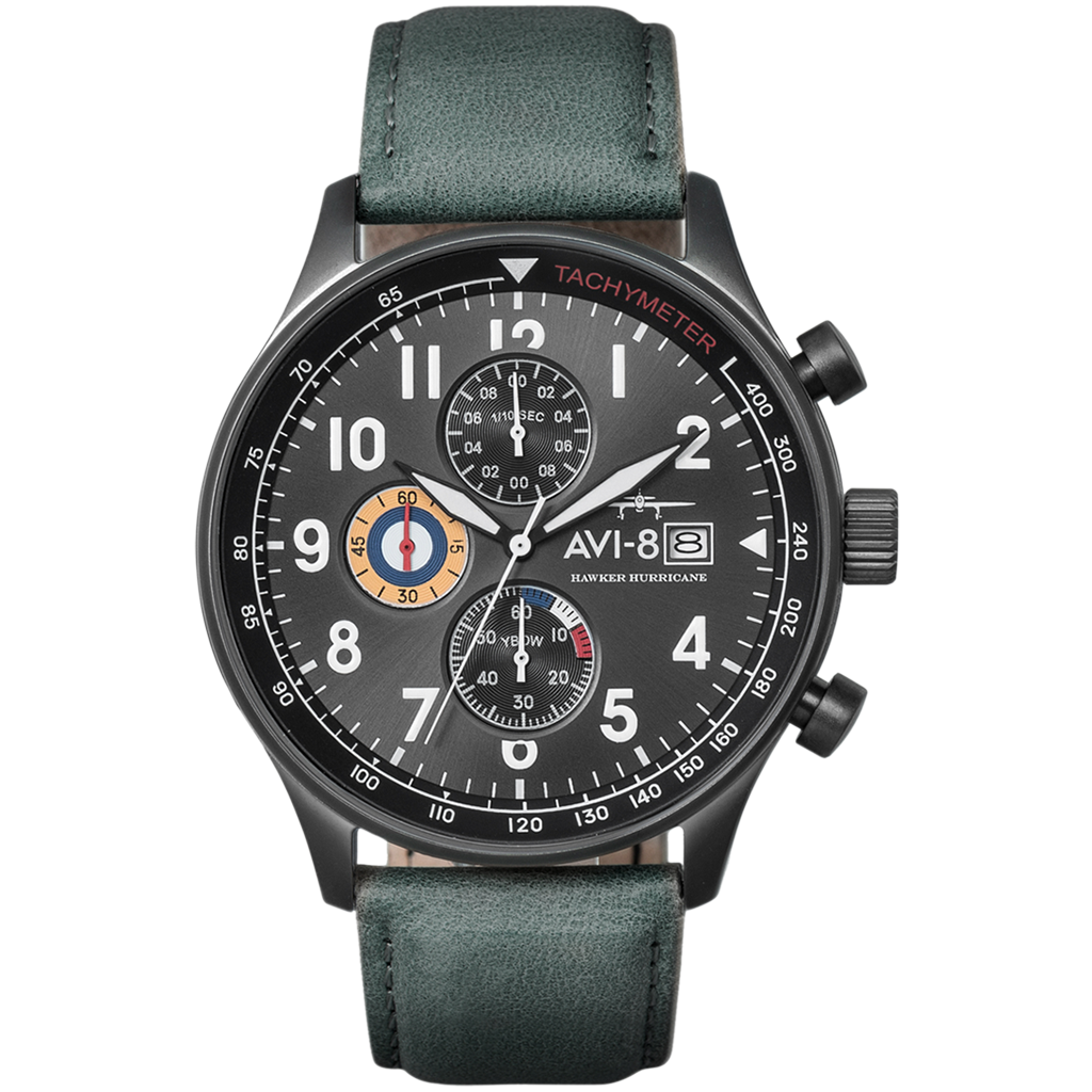 The classic aviation inspired chronograph. Classic case shape lines house detailed dials, colours, and graphics that celebrate the spirit and adventurism of an era gone by. Straightforward hour indexing, bold hands, and detailed vintage designed subdials of the chronograph are all blended to create a timepiece that is elegant in design, precise in performance and stylish in its comment on the wearer. Strapped with a genuine leather strap that is both dressy yet casual, this is a timepiece that nods to chivalry and performance.