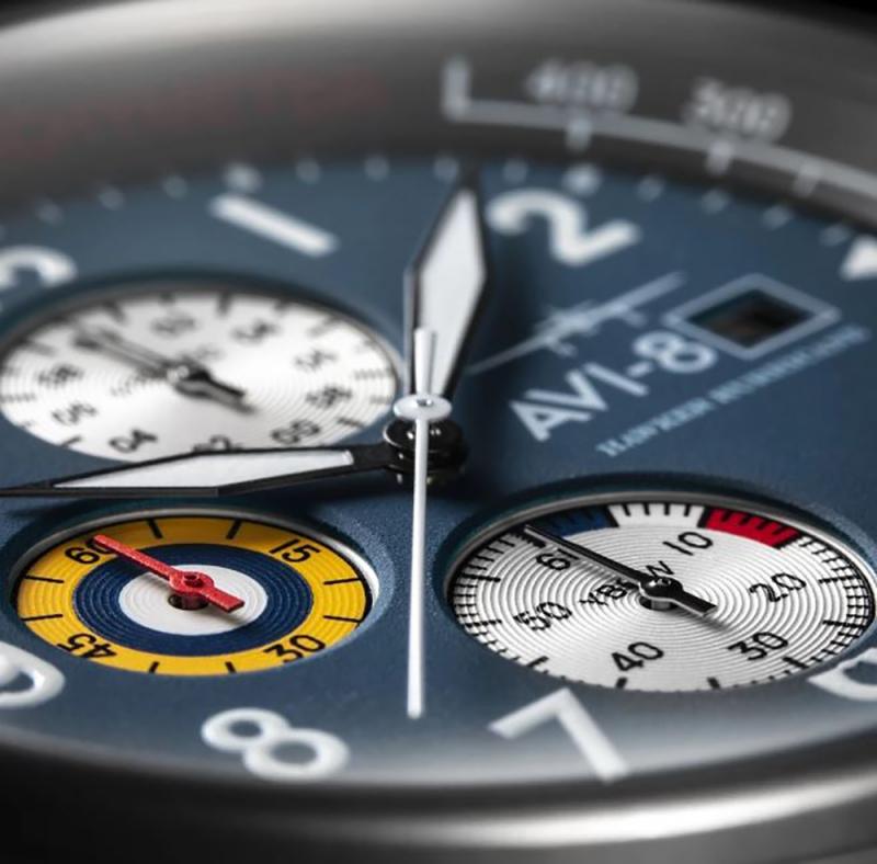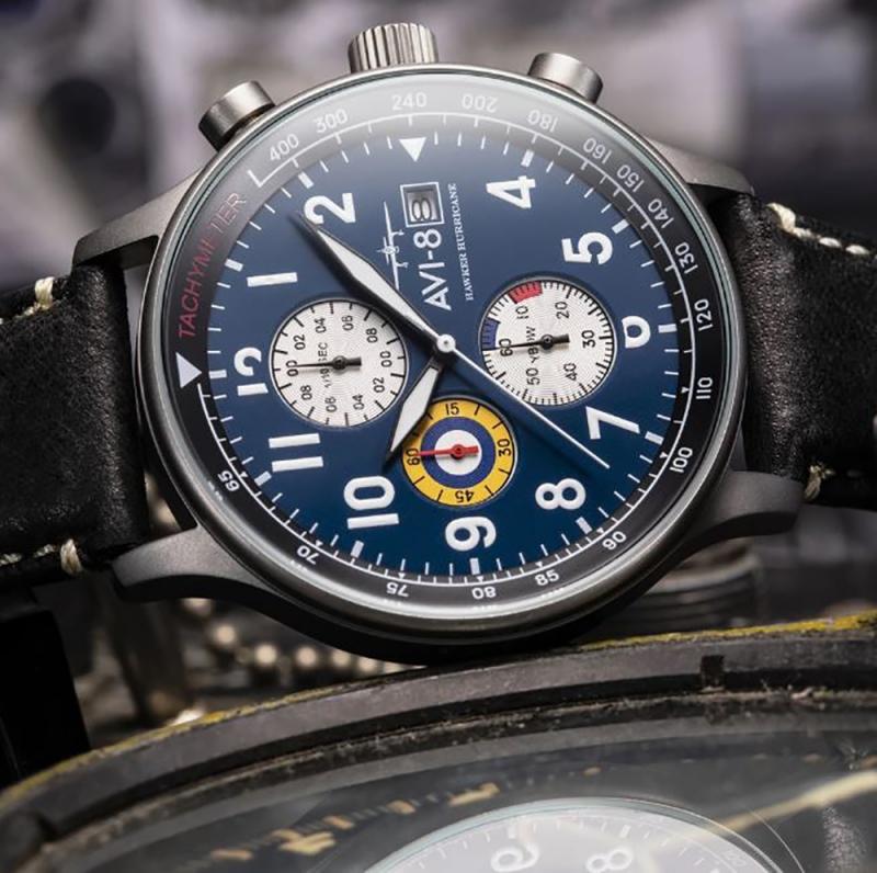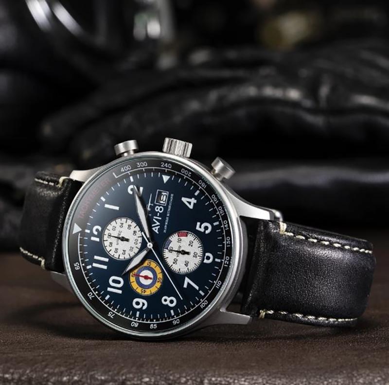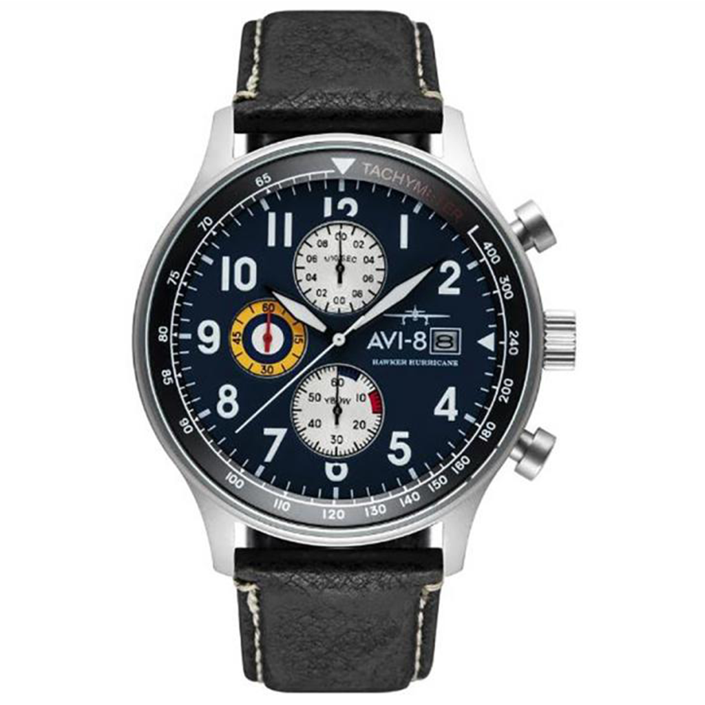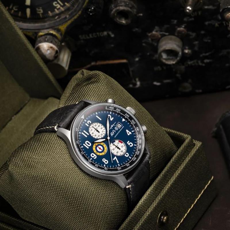 The classic aviation inspired chronograph. Classic case shape lines house detailed dials, colours, and graphics that celebrate the spirit and adventurism of an era gone by. Straightforward hour indexing, bold hands, and detailed vintage designed subdials of the chronograph are all blended to create a timepiece that is elegant in design, precise in performance and stylish in its comment on the wearer. Strapped with a genuine leather strap that is both dressy yet casual, this is a timepiece that nods to chivalry and performance.