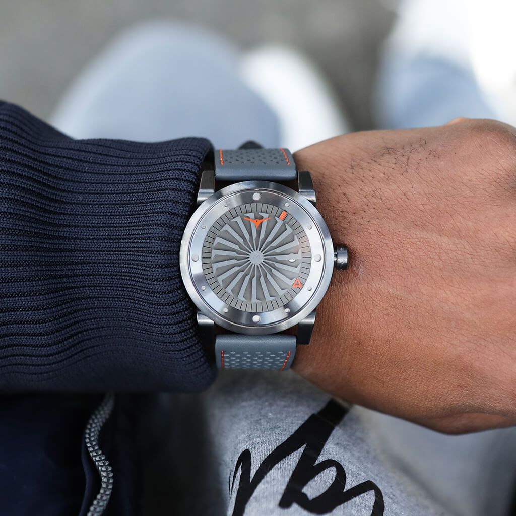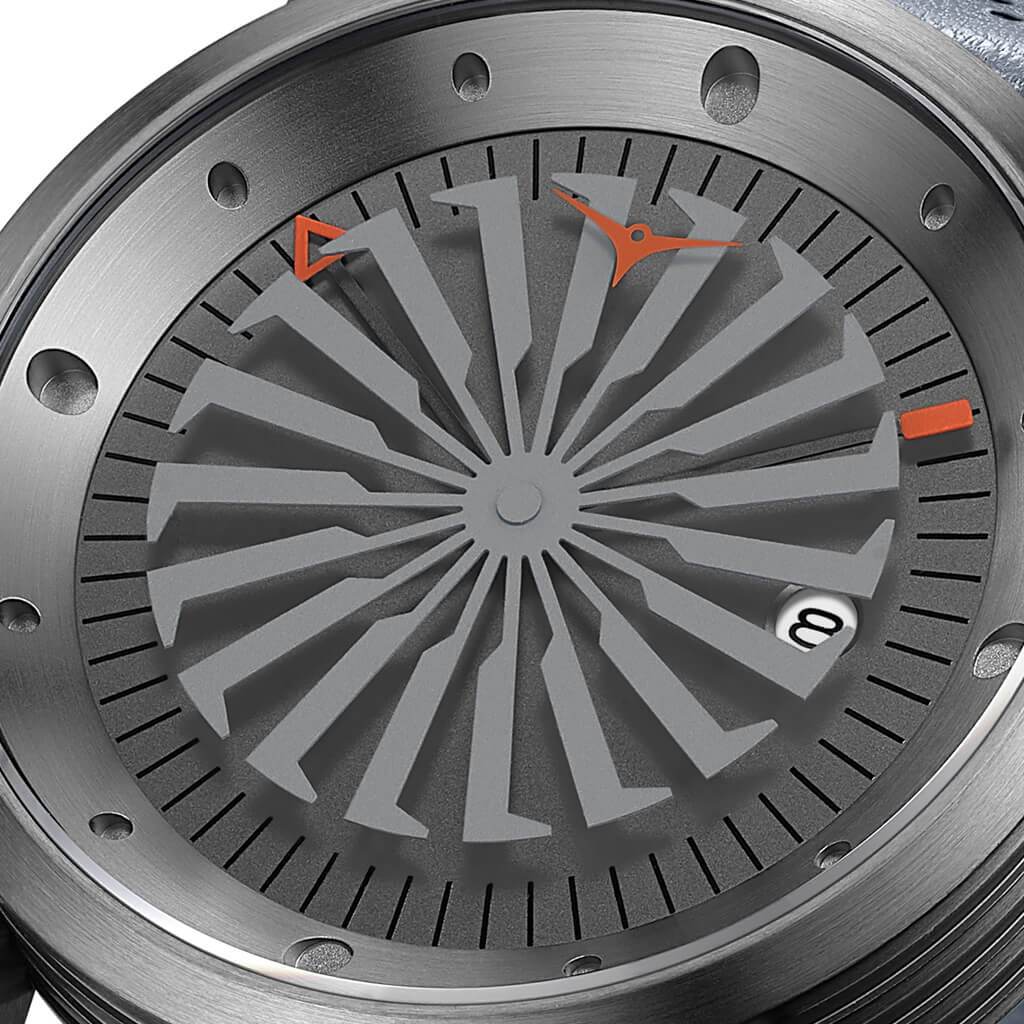 ออกแบบโดยใส่ใจในรายละเอียด Ethos ที่เน้นสีส้มทำให้ดูโดดเด่นสายหนังเจาะรูพร้อมการเย็บสีส้มช่วยเติมเต็มรูปลักษณ์ของนาฬิกาอัตโนมัติเรือนนี้ Blade Ethos โดดเด่นด้วยหน้าปัดกังหันหมุน 1 วินาทีอันเป็นเอกลักษณ์