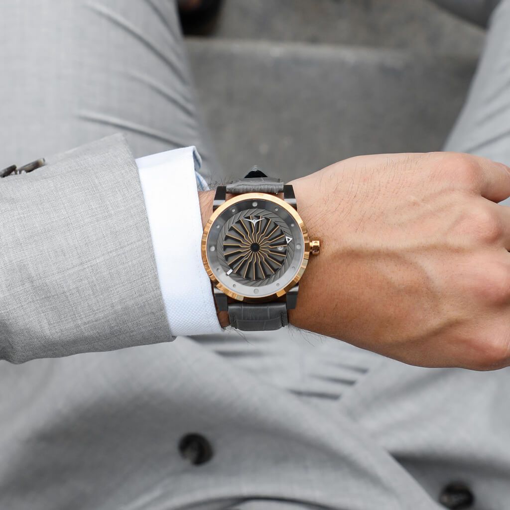 Fusion เป็นนาฬิกาที่มีความซับซ้อนซึ่งผสมผสานระหว่างตัวเรือนโรสโกลด์และรายละเอียดแบบกันเมทัลแบบคลาสสิกศิลปะแห่งการผสมผสานและนวัตกรรมจะมอบความประทับใจไม่รู้ลืมชิ้นเวลานี้มีหน้าปัดกังหันหมุน 1 วินาทีอันเป็นเอกลักษณ์