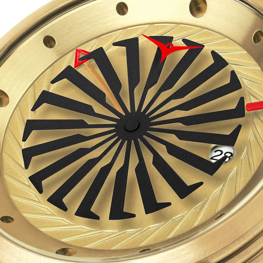 แนวคิดอันเป็นเอกลักษณ์ของเราบนนาฬิกาบุรุษสีทองแบบดั้งเดิมใบมีดนี้จับคู่กับสายหนังแท้สีเขียวและการเคลื่อนไหวอัตโนมัติการผสมผสานสีทองแบบไร้กาลเวลาเป็นส่วนเสริมที่ยอดเยี่ยมสำหรับคอลเลกชั่นใด ๆ เบลดโกลด์มีหน้าปัดกังหันหมุน 1 วินาทีอันเป็นเอกลักษณ์