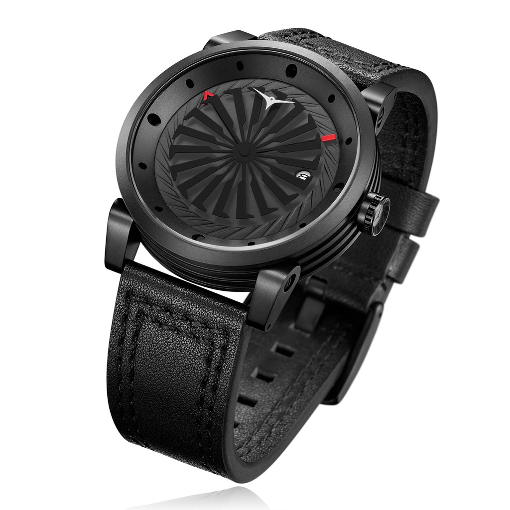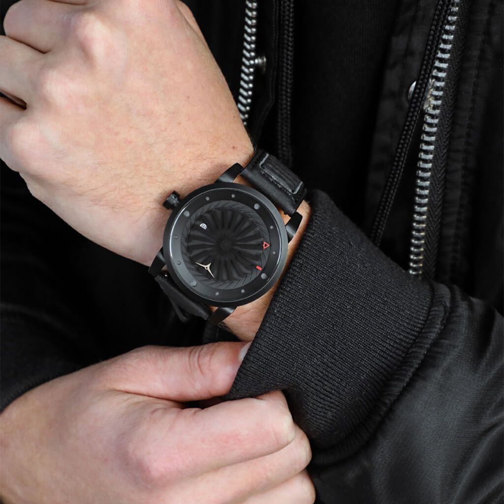 นาฬิกาผู้ชายสีดำเหมาะสำหรับไลฟ์สไตล์ของคุณ Blade Phantom ผสมผสานระหว่างความมั่นใจและทัศนคติที่เข้ากับบุคลิกของคุณ นาฬิการุ่นนี้มีหน้าปัดกังหันหมุน 1 วินาทีอันเป็นเอกลักษณ์